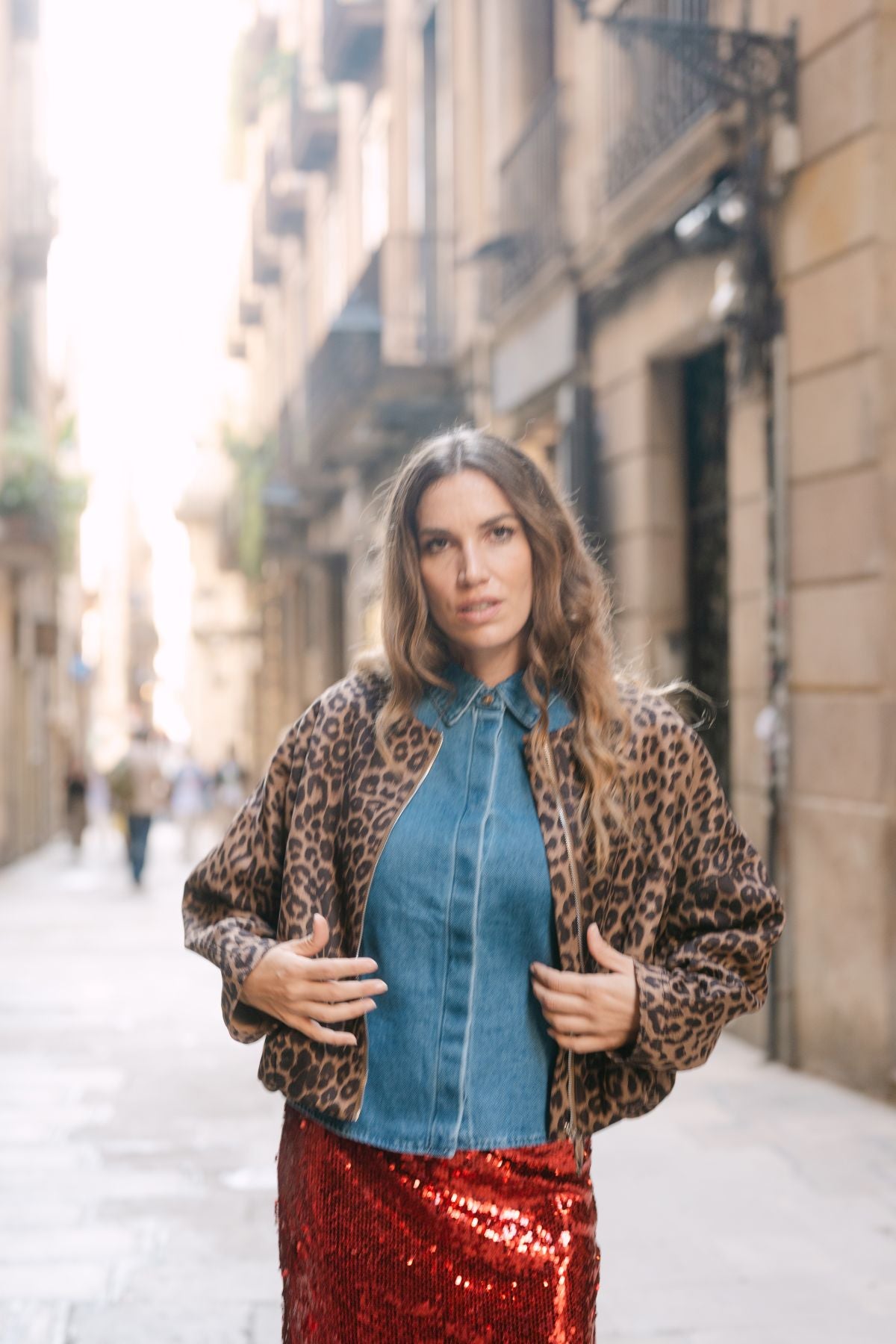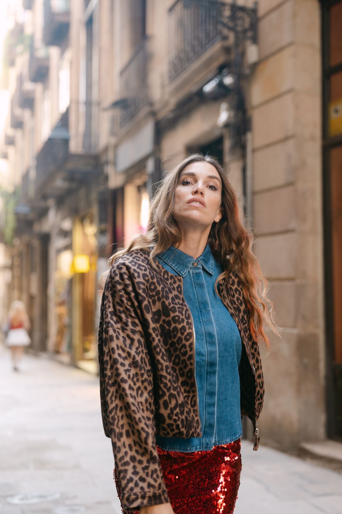 La bomber Spirit rompe con lo convencional gracias a su estampado leopardo y cuello mao, que irradian una vibra atrevida y sofisticada. Su cintura ligeramente abullonada moldea tu silueta, adaptándose a cualquier estilo que te atrevas a llevar. Es la prenda clave para inyectar personalidad y audacia en tu look diario sin sacrificar comodidad. Atrévete a combinarla con nuestro vestido Nesgas y conquista con un outfit que brilla tanto de día como de noche, en cualquier ocasión.
