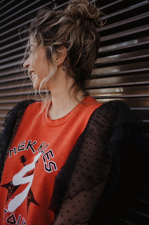 La perfecta camiseta Rockera para tu armario. Será tu aliada perfecta para looks sport, looks con falda, shorts, jeans,...