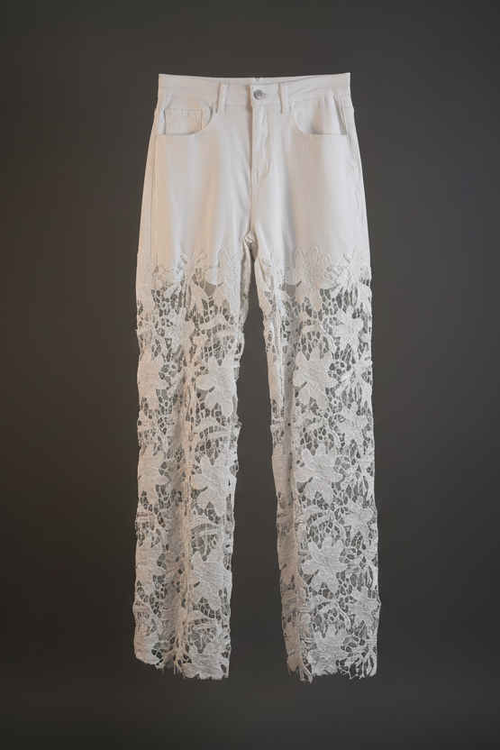 Los Jeans Rebel fusionan el carácter urbano del denim con la sensualidad del encaje floral. Un diseño único que transforma el clásico vaquero en una pieza de impacto.