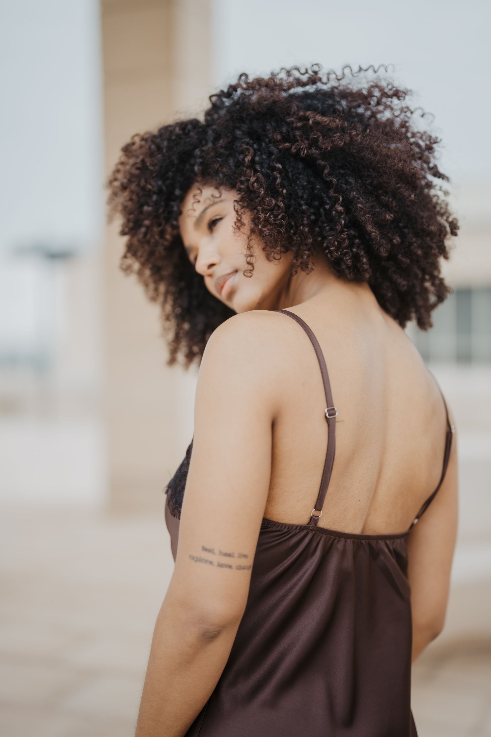 Diseñado para mujeres seguras, combina sensualidad y carácter en cada detalle: escote delicado con encaje, tirantes finos y un bajo asimétrico con caída ligera que estiliza la figura y aporta dinamismo al look.