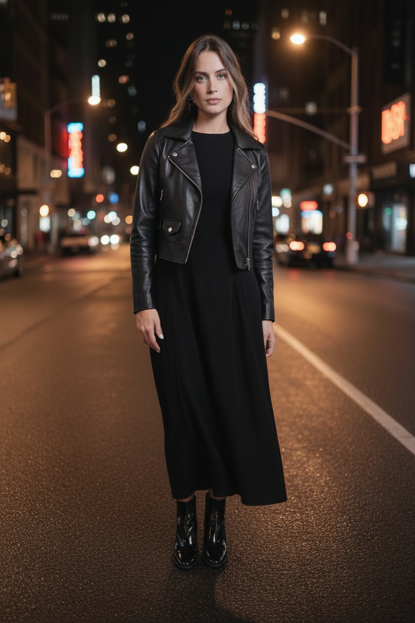 El vestido midi NESGAS destaca por su diseño cuidadosamente estructurado, con cuello redondo y manga sisa que ofrecen una línea limpia y atemporal. El bajo con acabado en nesgas con gran caída y peso, aporta volumen creando un equilibrio perfecto entre movimiento y elegancia.