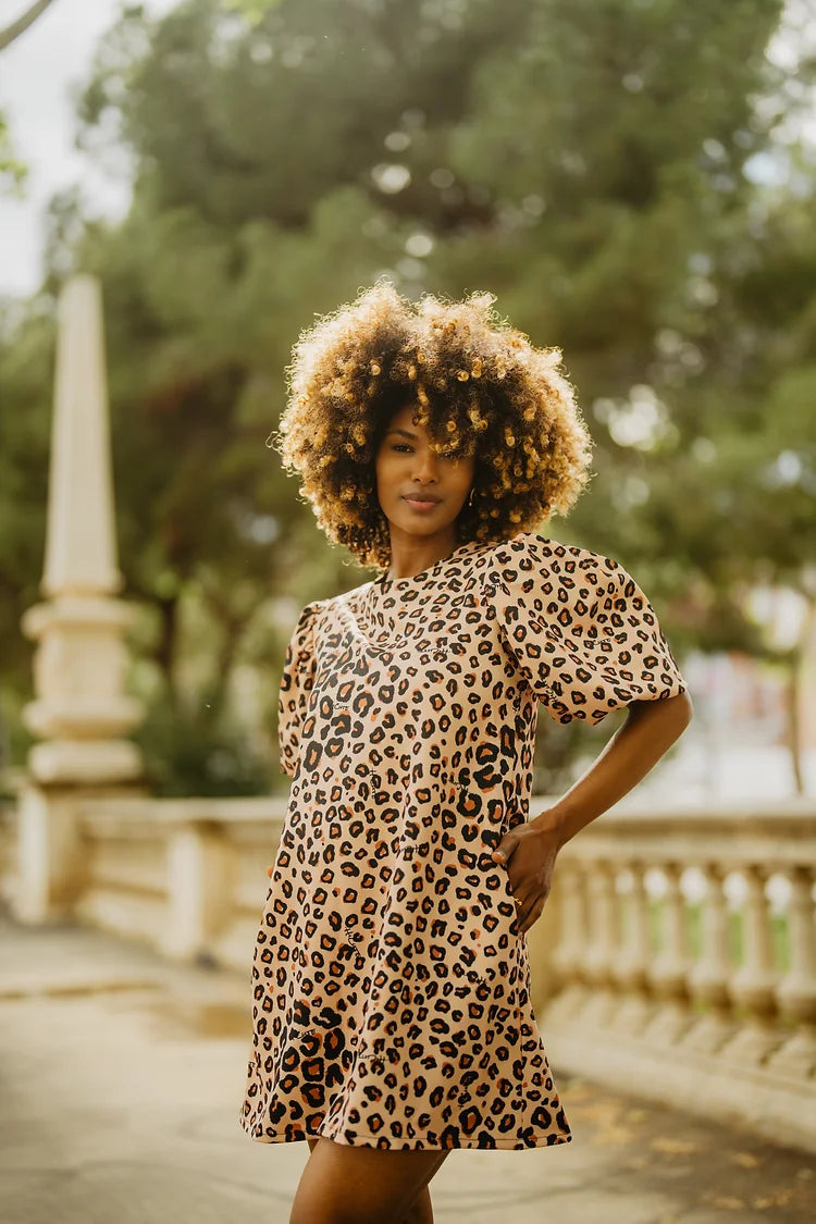 Vestidazo Print, salvajemente bonito y versátil. Por encima de la rodilla y tiradito con forma evasé que favorece a cualquier silueta.